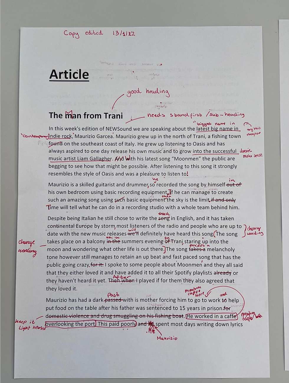My edited Artist article