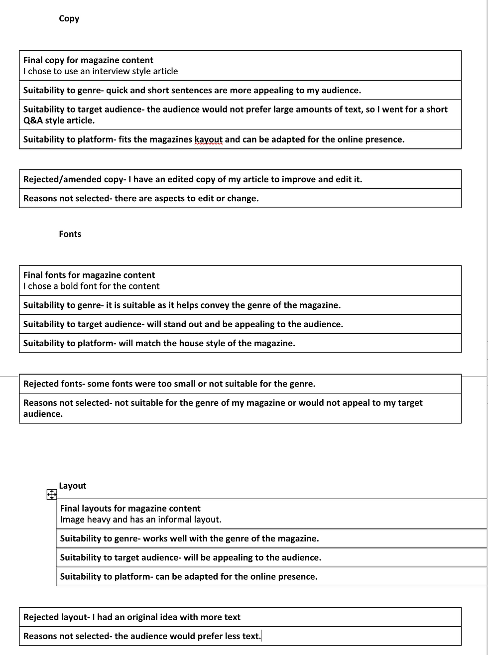 Overall, I really enjoyed the experience of creating this magazine as it was extreme creative and fun to produce. I learned a lot of skills from this project which I will take into my future projects.