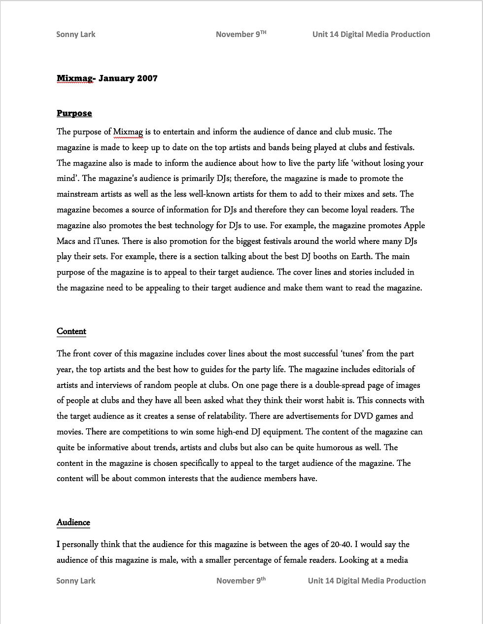 Unit 14 Learning Aim A- Purpose, Content, Audience of my magazine