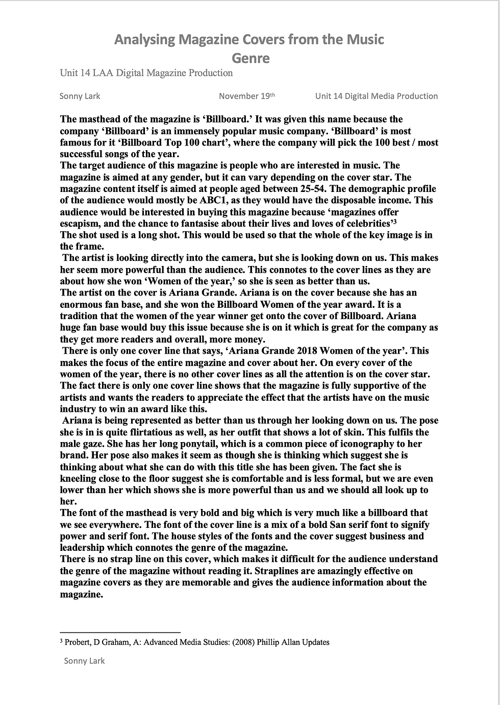 FINAL LAA Analysing Front Cover of Two Music Magazines