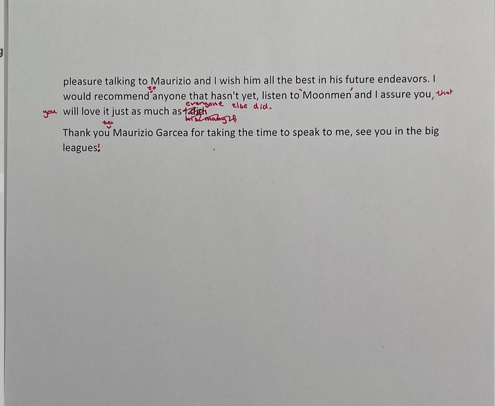 When looking at my double page spread with my artist article I realised i would have to re arrange the oder of the text to fit my desired layout. i played around with the oder of questions from the article and then got my final positioning. the entire article did not fit on the double page spread so the rest of the article would continue on the next pages of the magazine. i thought this would be the best way to present the article as the main cover artist is supposed to be a big deal therefore would have more pages about them.