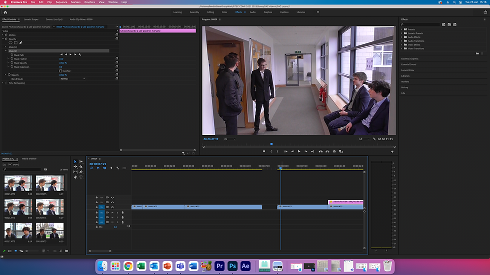 After assembling and editing the first drafts my videos i then continued to editing the videos until i was happy with the outcome.
