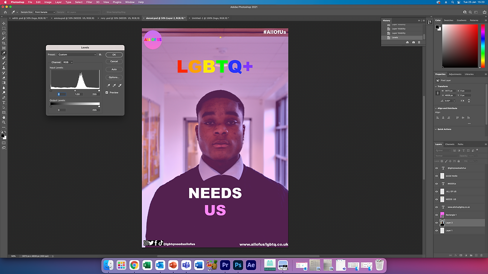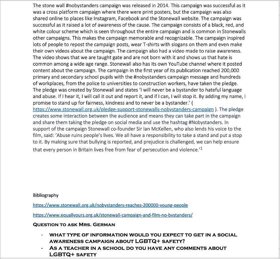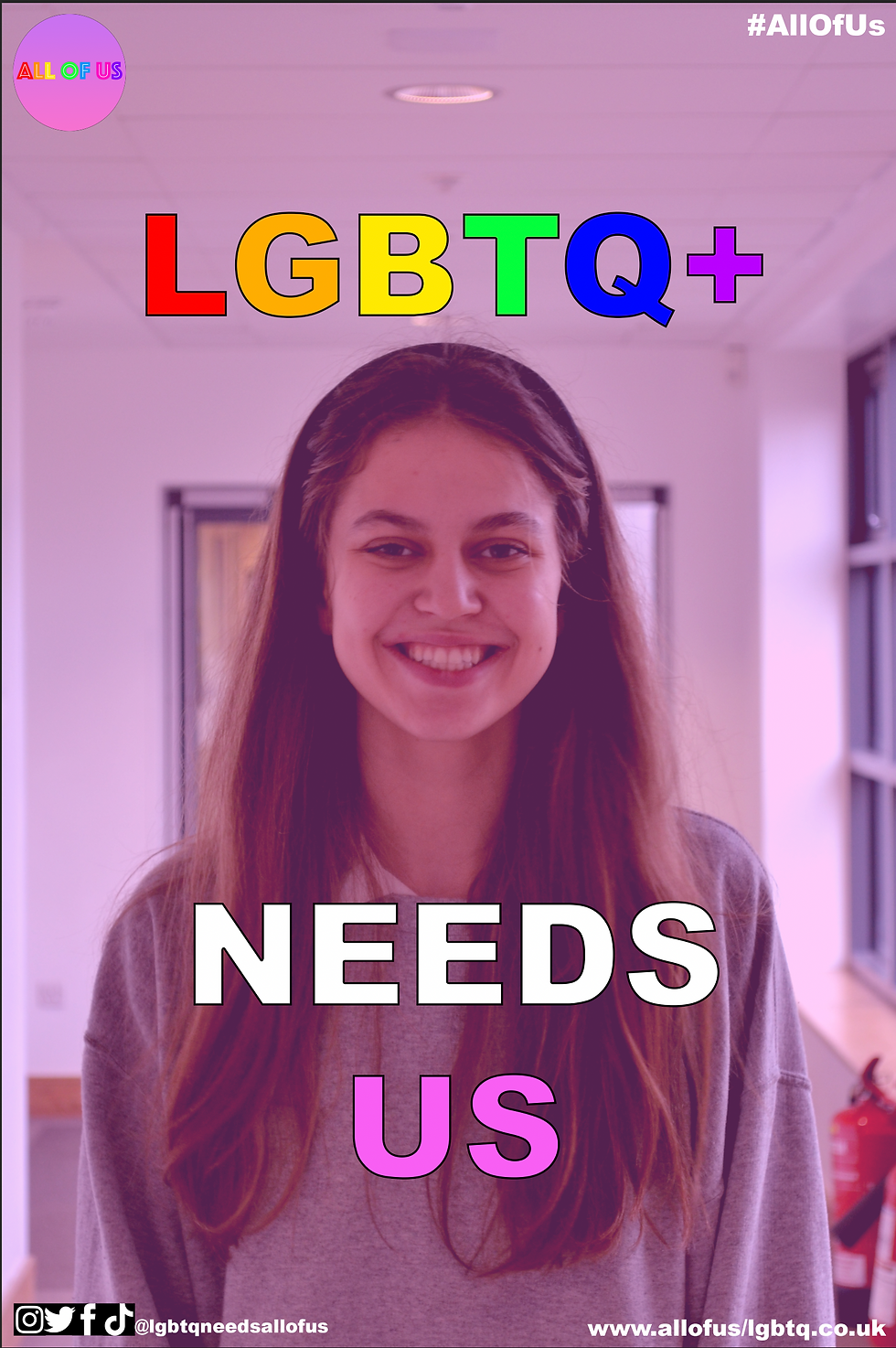 It was important for my campaign to have a strong brand identity to be memorable to the audience. When creating my campaign, I made sure It has a strong logo, colour scheme and be simplistic enough to be effective and memorable. Looking at my logo, it has a strong brand identity with the purple and pink and the rainbow font text also tells the audience what the campaign is about because rainbow is already strongly linked to the LGBTQ+ community. Another strategy I used was to promote my campaign on social media. This is because my campaign’s audience are digital natives. The audience for the campaign is students, to appeal to this audience I used social media accounts that are most popular amount's this audience. Another was the use of repetition throughout the campaign. All the posters and videos have the same text and fonts. Alongside the repetition of placement. This helps to create a clear brand identity and continue to make the campaign memorable. Another strategy I used was to be a social media-based campaign. The campaign interview video was made to be posted on social media. However, it was important that the campaign video can be cut up or edited into small sections. I chose this strategy as the target audience of the campaign has a small attention span so therefore, short form content would be more appealing for the audience. I also researched into other successful campaigns such as Stonewall, BLM and many more and took inspiration from them. I noticed that many successful campaigns would have a schedule of when their content was posted. My campaign content had a schedule of when the video would be released, and the posters release was staggered. This is due to social media algorithms. Social media platforms have algorithms, and this would mean the posts would not be as successful if they are all posted at the same time. I also noticed all the campaigns I looked at had hashtags to help promote their campaign and make the audience more active than passive. My campaign focuses on repetition as there are stereotypes of teenagers easily forgetting things, therefore repetition will help to prevent that. It was also especially important for the campaign to be simple and memorable. Using the slogan ‘ALL OF US’ was a choice I made as it is easily remembered but also reflects the brand identity and the messages the campaign is trying to portray. I also chose to promote my campaign on social media as the target audience of the campaign are digital natives. I researched into what the most popular social media platforms are amongst the audience and found that Instagram and TikTok are the most popular apps now. I have focused the arresting of the coping on these apps however as I know that new apps will become more popular over time, the campaign will continue to use the most popular apps to market the campaign and all the content can be easily transferred and shared to new apps to help reach the target audience.